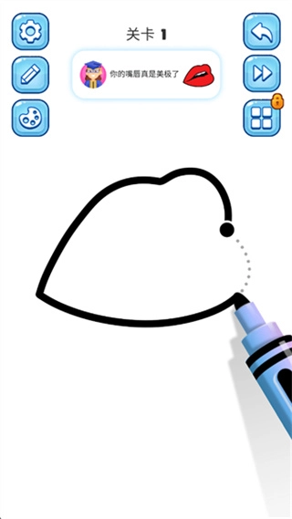 1、点击“开始游戏”按钮即可进入关卡,首先玩家需要拿起马克笔,沿着虚拟线条进行绘画;