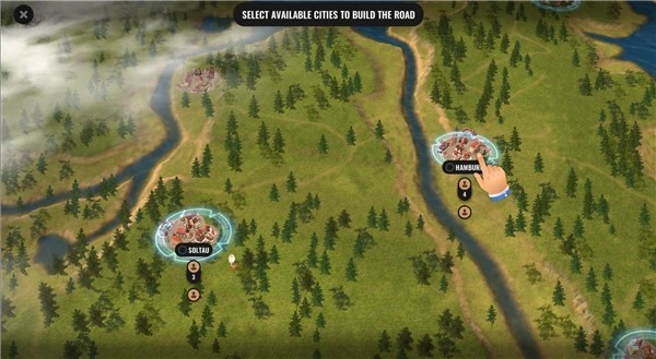 3、系统会智能标注出当前城市可拓展的路线方向,你可以自由选择想要开通的连接线路。