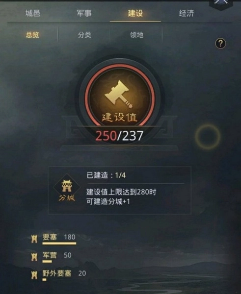 建设值可用于建造要塞等各类建筑,也能用来占领地图上的野外建筑。一旦建设值不足,就无法进行建造或占领操作。