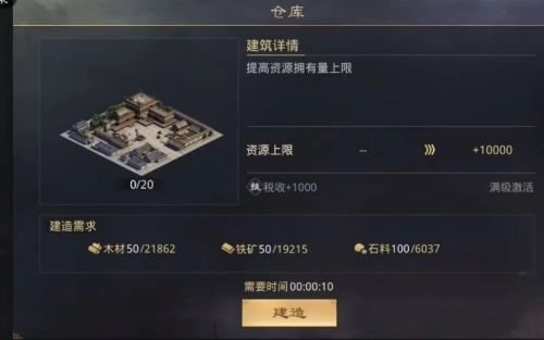 在《率土之滨》游戏里,当玩家的名望积累到特定程度后,便会开启建设值的获取机制;并且随着名望的不断增长,建设值也会逐步增加。建设值的用途包括修建要塞等各类建筑,以及攻占地图上的野外建筑。一旦建设值不够,玩家就没办法进行建造或占领操作了。