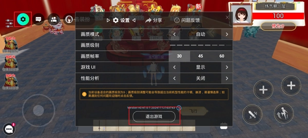 -点击左上角的设置按钮,可执行退出地图、切换画质帧率以及调整其他参数等操作。