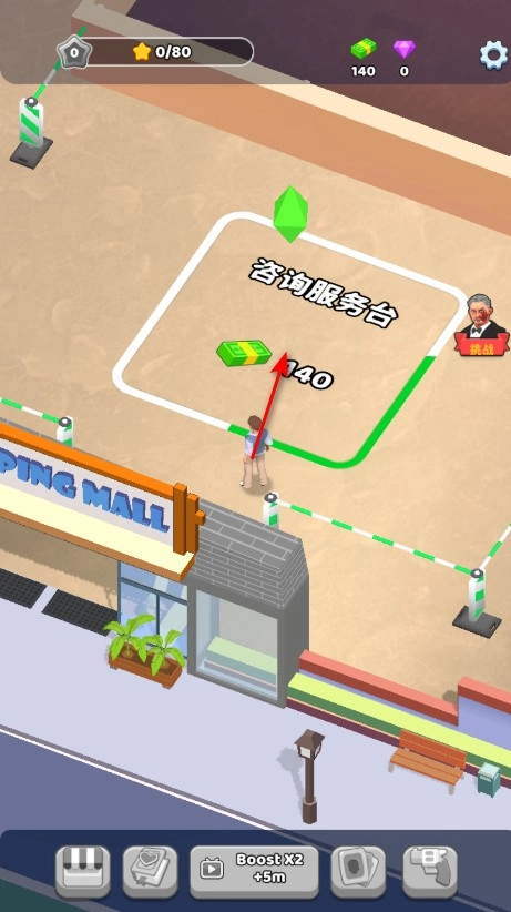 5、借助左侧的虚拟摇杆控制角色移动,开启专属于你的商场帝国经营之旅。