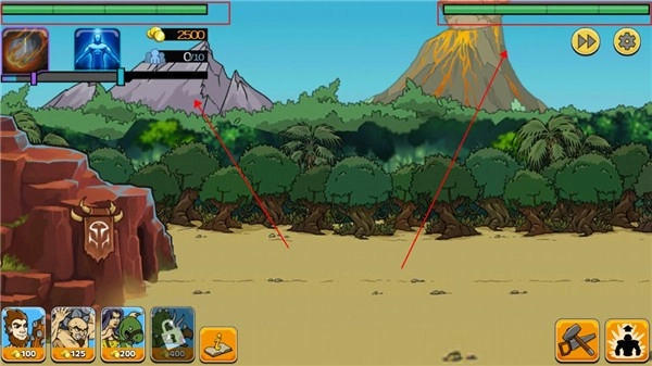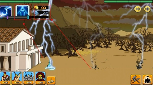 3、敌人会不断召唤士兵向你发起进攻,你得点击左下角来挑选合适的兵种进行迎战。金币的数量会决定你所能召唤的士兵的等级和数量。