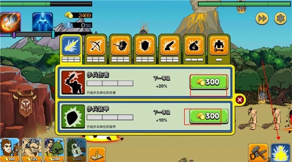 5、另外,点击右下角的升级按钮,能够花费金币来增强士兵的各项属性,让他们拥有更强的战斗力去抵御敌人。