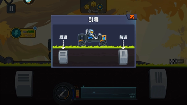 1、进入游戏后,借助左右两侧的按钮来操控车辆的前进后退以及加速减速。
