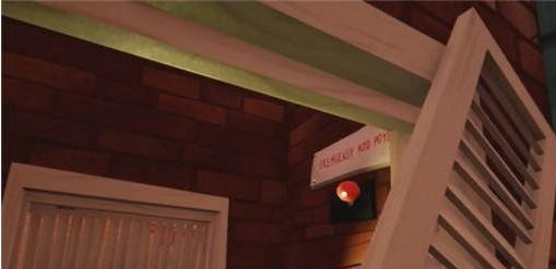 5、沿着梯子进入室内,用任意一件物品击中墙上位置最高的画,打开旁边的白色门。