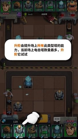 2.依次合成等级较低的炮塔。