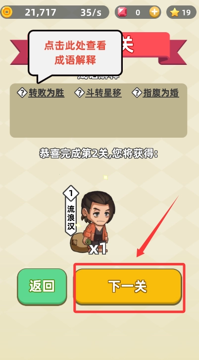 游戏刚开始的时候,你可以点击按钮来购买新角色,这样就能让你的成语挑战阵容变得更丰富。