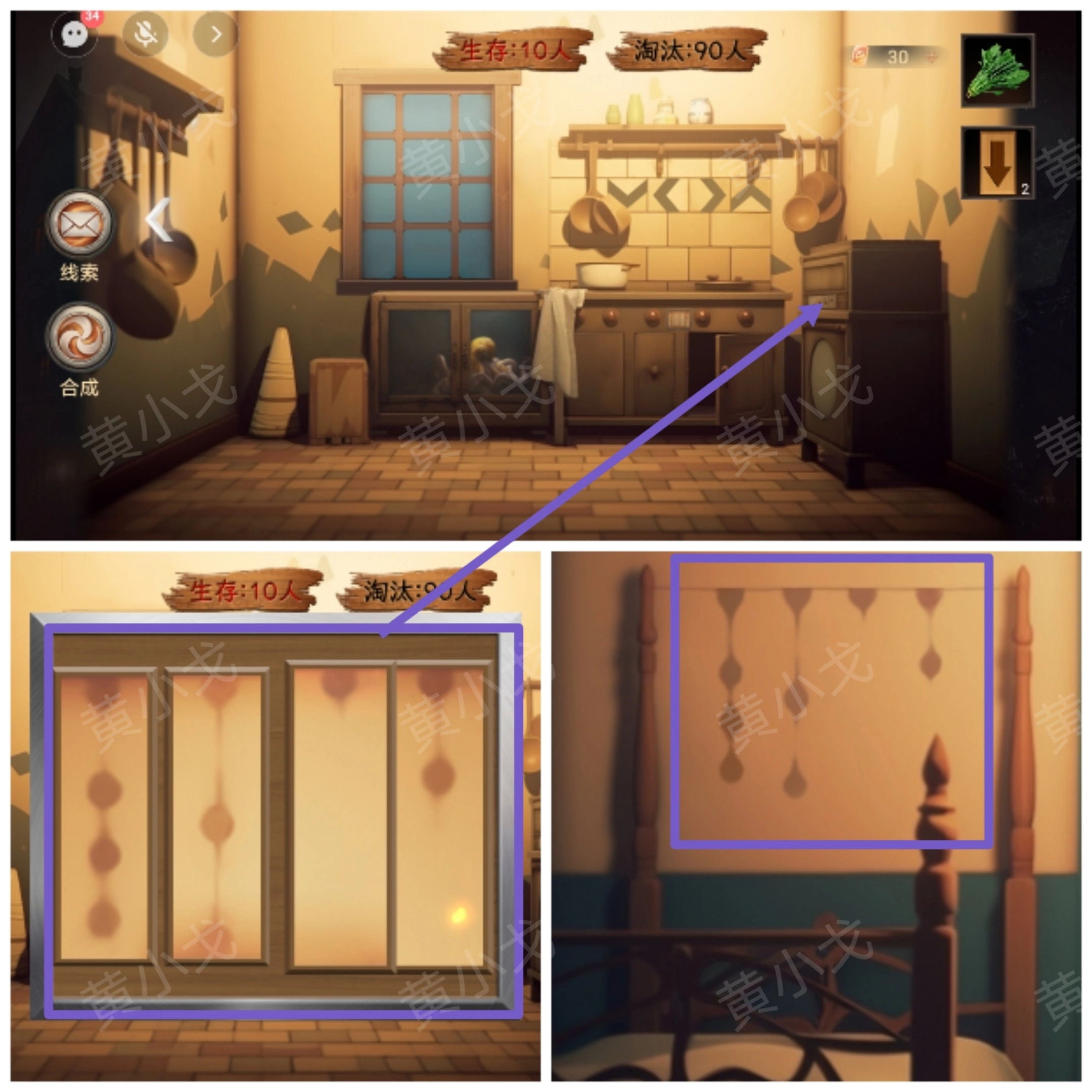 3.打开橱柜,获得【菠菜】和【箭头木板】