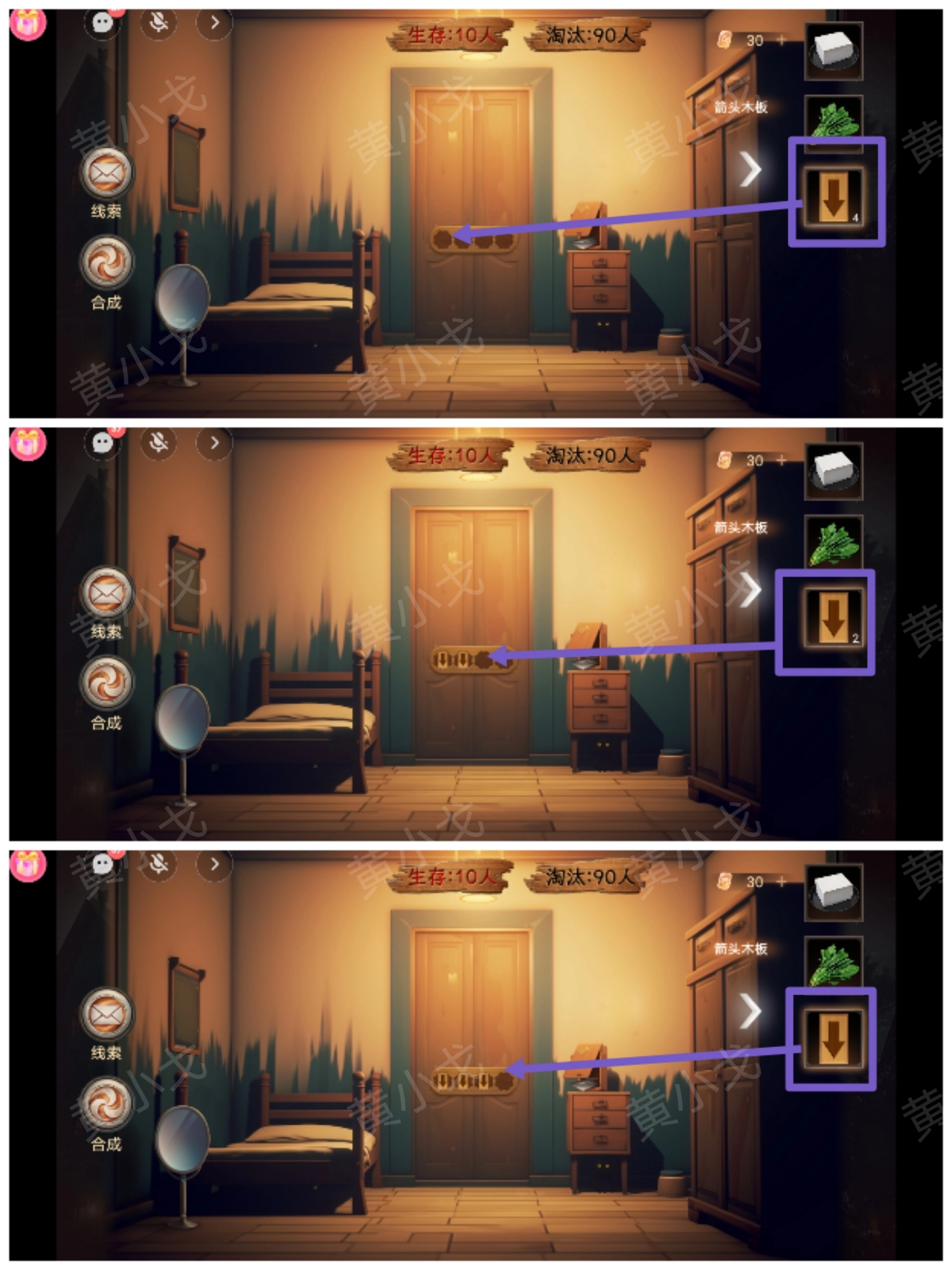 8.依据男主所在处衣柜上的线索,对箭头木块的方向进行调整。
