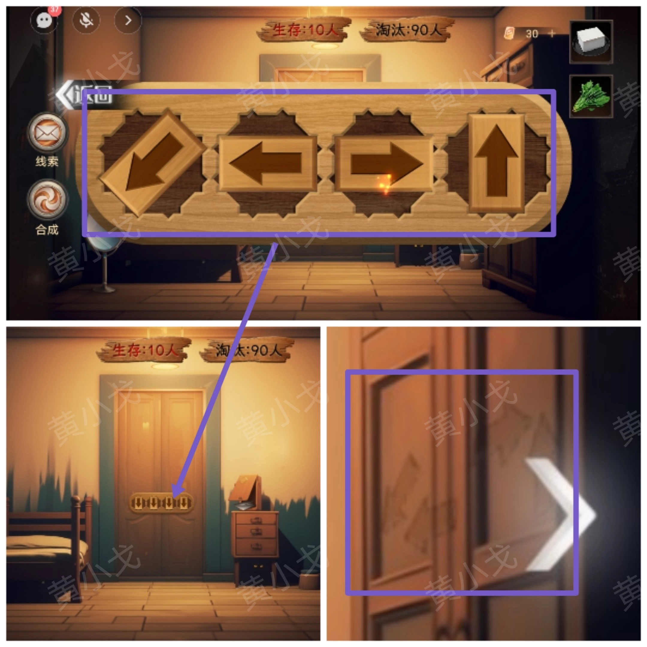 ①将墙上的箭头告诉男主:下左右上