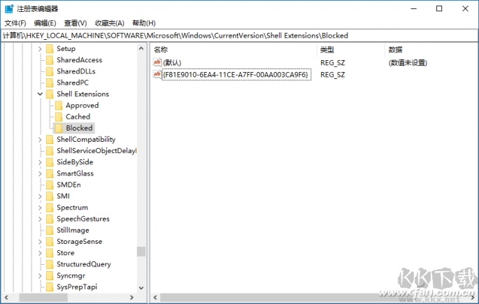 前往\HKEY_LOCAL_MACHINE\SOFTWARE\Microsoft\Windows\CurrentVersion\Shell Extensions\Blocked
