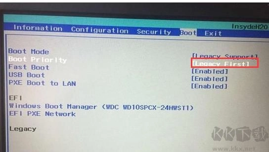 5、再把Boot Priority设置成Legacy First,按F10弹出窗口选择yes回车;