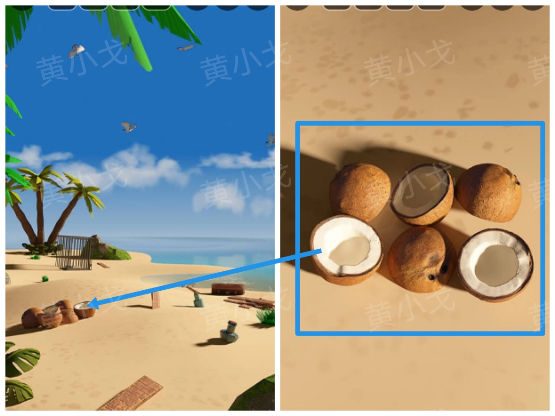 4.点击查看地上的椰子,获得线索