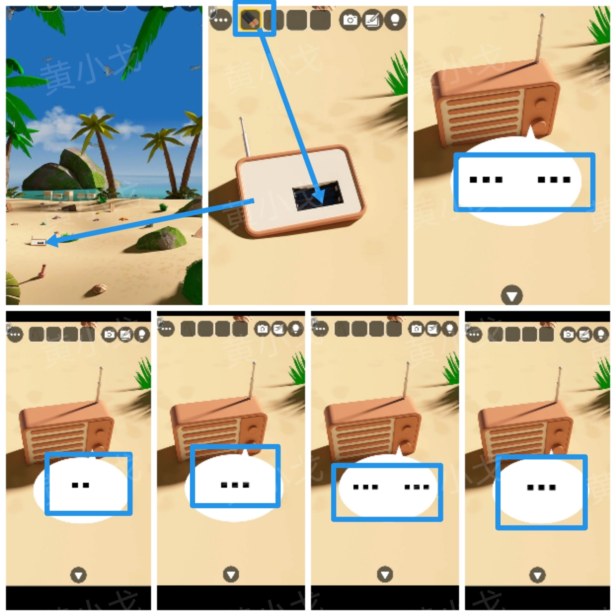 11. 轻点地上的收音机,把【电池】安装进去,从而获取线索。