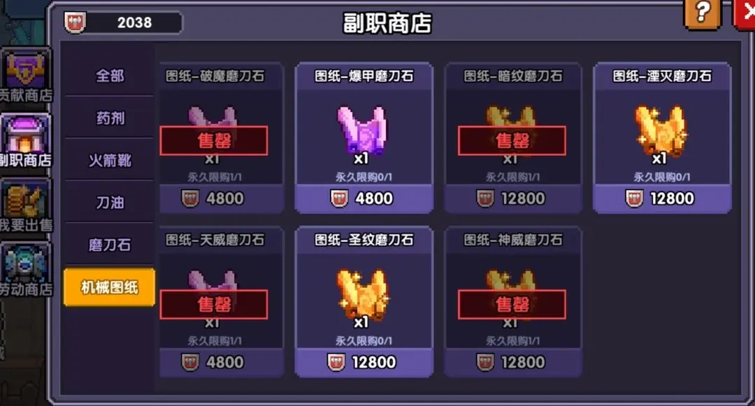 锻造工坊,有人叫它副职业,也有人称其为炼药,其实指的都是同一个地方(这里统一称为副职业,所以后面就简称副职)。这个地方主要提供的是炼药相关的物品,也就是部分玩家说的“吃药”所需的东西,具体类型分为三种:火箭鞋、磨刀石或刀油、药剂。