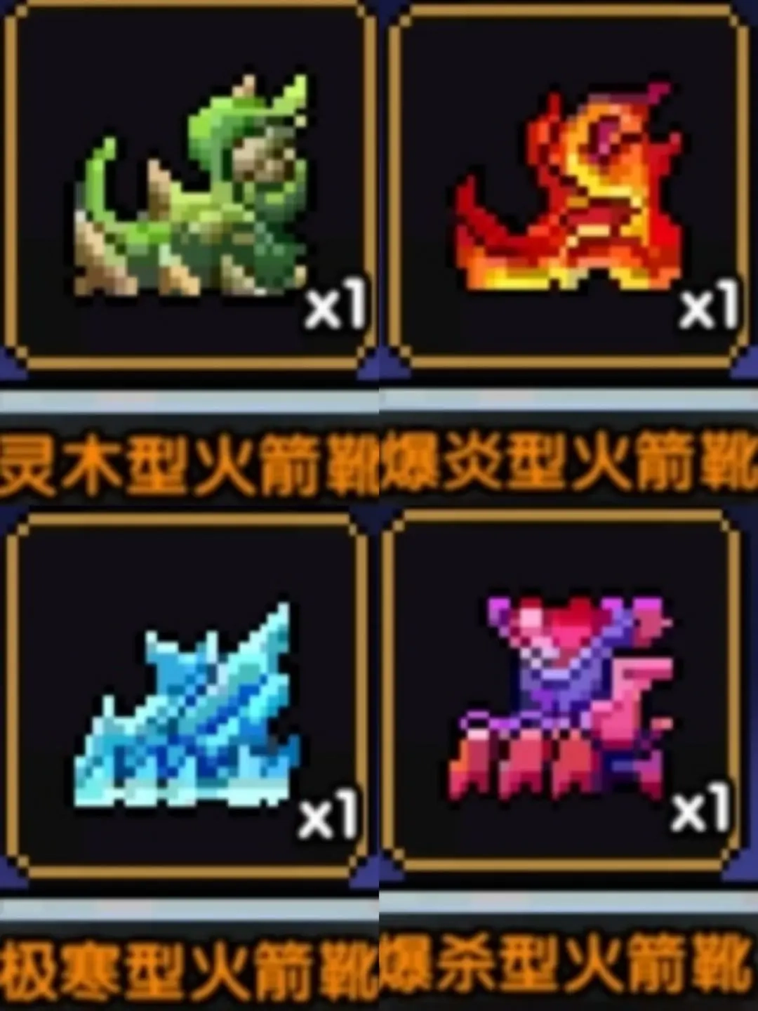 火箭鞋的话,主要还是做三属性伤害和伤害加成的鞋子