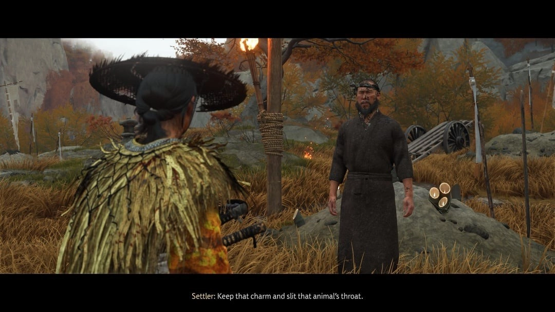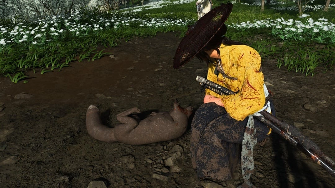 《羊蹄山之魂》的大部分过场动画采用游戏内实时模型制作,这使得“三池模式”出现了一个奇怪的副作用:你与之对话的几乎每个角色,身上都会沾满泥浆。在该系列的Reddit社区里,用户Kegg02分享了几张能体现这一奇特现象的截图,还提出Sucker Punch应该降低“三池模式”里过多的泥浆量。