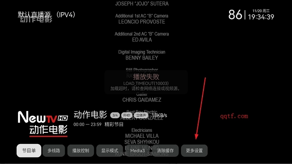1. 打开小飞电视app,在屏幕上长按,接着选择更多设置。