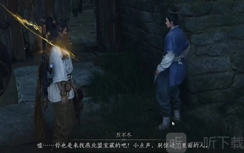 1、第一步,抵达燕北盟所在地的门口,寻找到烈不尽并与之展开对话。