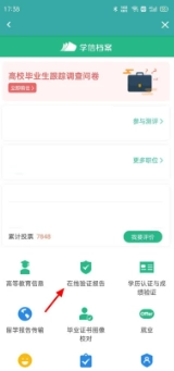 2. 在学籍查询页面,点击【在线验证报告】选项。