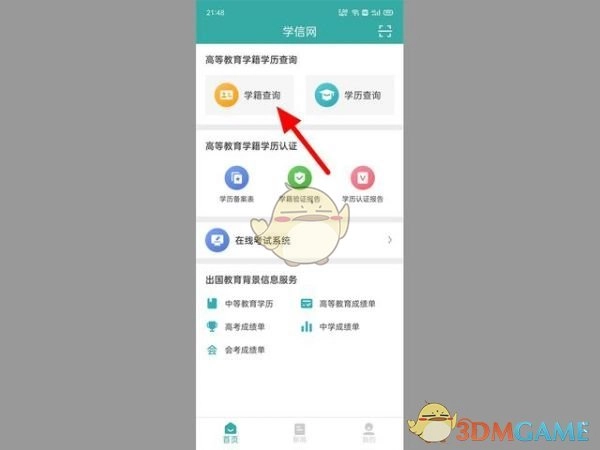 1. 开启学信网app,登录完毕后,点击【学籍查询】。