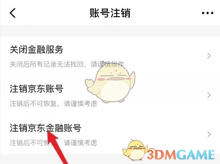 6、找到并点击“注销京东金融账号”选项,随后按照页面所给出的提示进行相应操作就可以了。