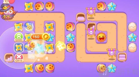 4、在拿到全清状态后,我们着重强化终点处的炮塔。这一关卡,减速星星是必不可少的,务必多放置减速星星。