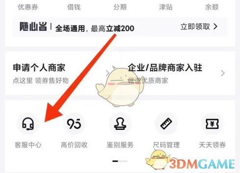 2、如下面图示,点击客服中心,查看是否支持提前还款。