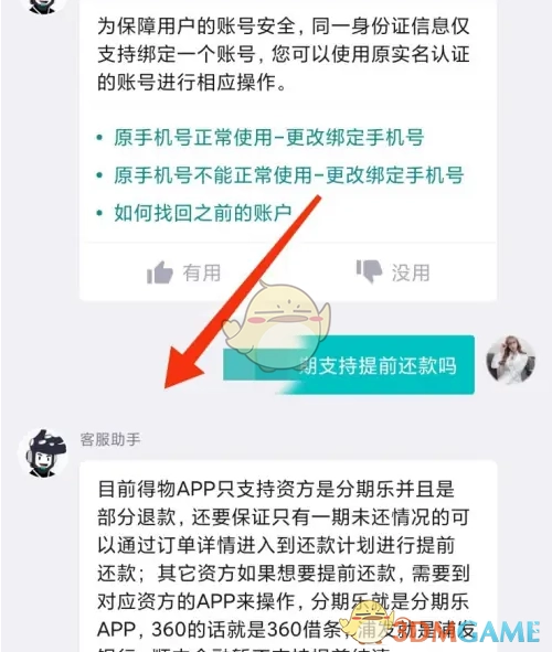 3、点击支持提前还款吗?如下图,从得物APP客服平台的回复可知,只需在对应的平台进行还款即可。