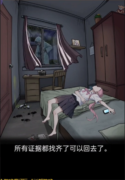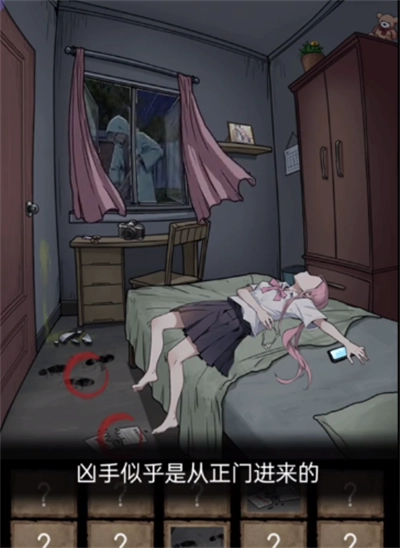 2. 点击桌上的【相机】,待凶手出现后,向左滑动【床单】,随即躲到床底。
