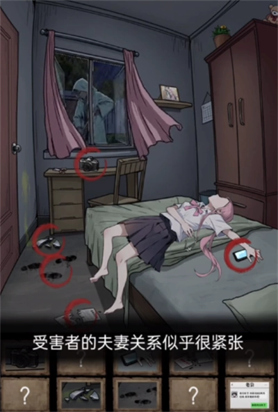 5、轻点死者脖子处的【勒痕】,接着点击离开选项,并指认凶手为【丈夫】,如此便可通关。