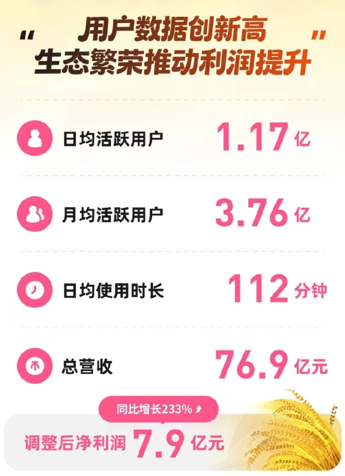 哔哩哔哩在11月13日发布了2025年第三季度的财务报告,这份报告的表现十分亮眼。根据财报数据,公司该季度总营收为76.9亿元人民币,调整后的净利润较去年同期大幅增长233%,达到7.9亿元,并且实现了连续多个季度盈利水平的稳步提升。