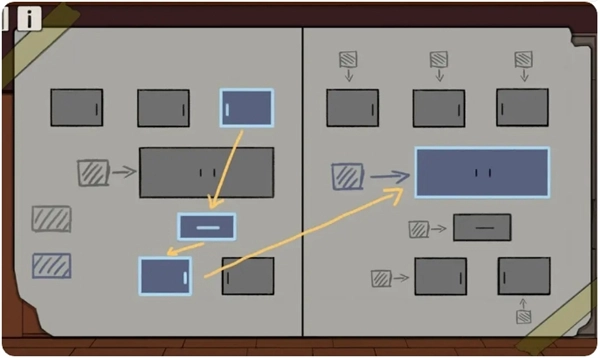 请点击5号柜门下方的纸条,按照图中所示进行解谜。成功解谜后,依据获得的线索,依次打开3号、7号和8号柜。完成这些操作后,再打开5号和6号柜,如此便能够连接其他时空。