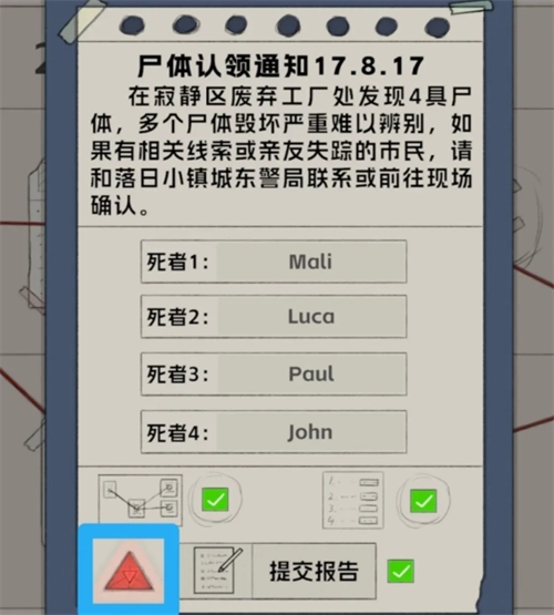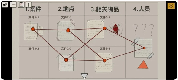 切换至场景四,按照图示填写连接线索板,中文或英文均可,大小写不做要求,Mali与Luca顺序可随意调换。获取“发光三角”以及文件“在半睡半醒的夜中”。