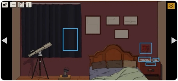 轻触墙上那破碎的相框,温度计便显露出来。把“纽扣电池”放进温度计,待温度计能正常运作后,若室温达到26度,就可以睡觉了。