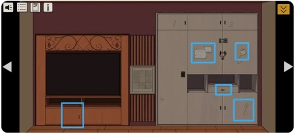 依次打开1号、7号、9号柜门,获得“胶带”。