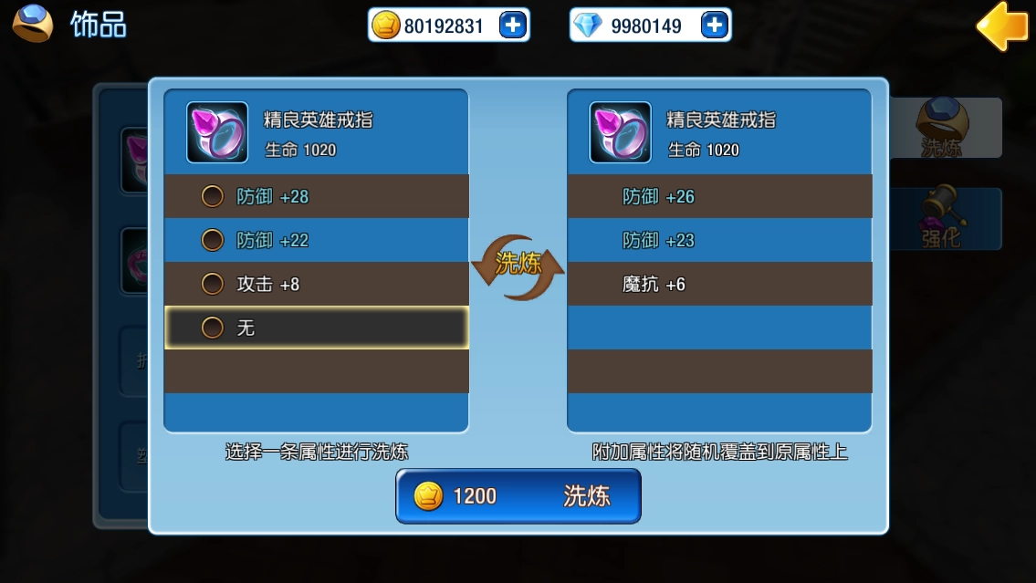 除洗炼之外,饰品还能进行强化,强化等级提升,饰品的属性值也会随之升高。