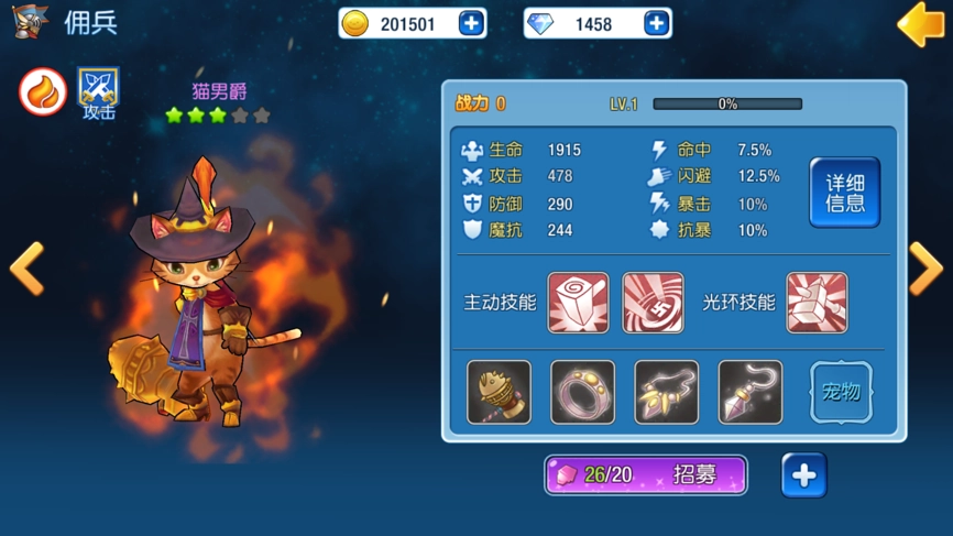 佣兵们不仅具备各异的属性,其战斗特性同样大不相同,具体分为防御、攻击、治疗、全能这四类。萌斗士们只要查看佣兵的详细信息,就能清晰知晓每位佣兵的战斗特性,如此一来,萌斗士们便可依据自身偏爱的战斗方式做出调整。就像拥有治疗战斗特性的神圣牧师,在萌斗士们作战时,能够给予大量的血量回复,保障萌斗士们的安危;而猫男爵则更侧重于攻击,能为战斗贡献更高的输出。至于在佣兵特性方面怎样做出取舍,完全取决于萌斗士们各自的战斗风格。挑选与自身风格契合的佣兵出战,能让佣兵发挥出最大作用。