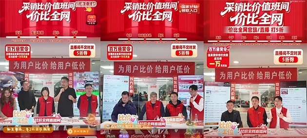 和之前的比价直播不一样,不少品牌大佬都聚集到了直播间,这也使得比价奖励全面加码升级。当品牌高管来到直播间时,如果用户连麦比价的是该品牌的商品,比如京东自营价格更高,那么提供低价线索的用户除了能获得1万元京豆奖励外,品牌高管还会额外赠送一件奖品,并且会现场抽取价值10000元的奖品福袋送给直播间用户,同时比价商品也会现场调整价格至9折销售。在直播过程中,品牌负责人还会不定时、限量发放5折的爆款商品,让更多直播间用户能够享受到福利。