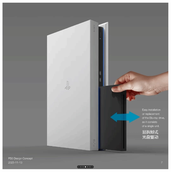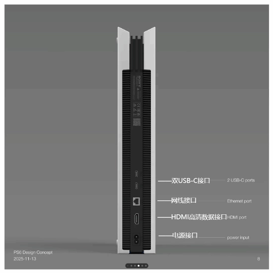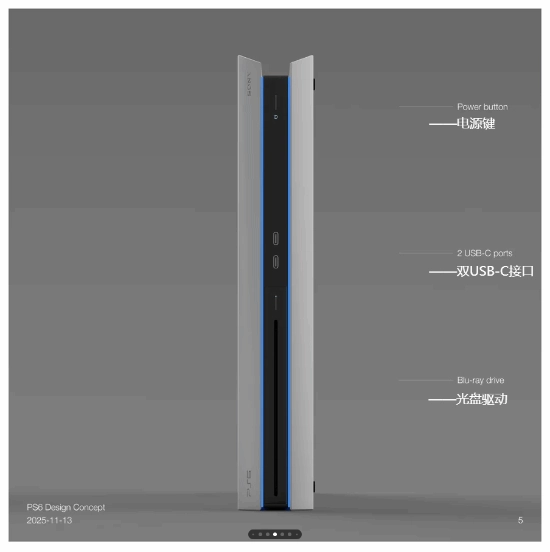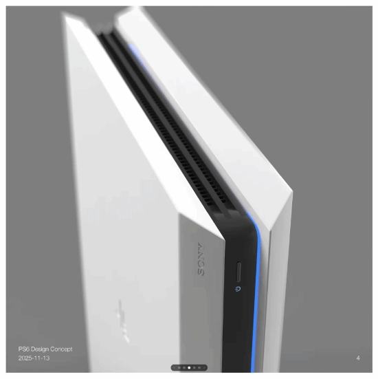 这款“PS6概念机”在整体设计上延续了PS5问世前的方形设计语言,同时融入了PS4标志性的平行四边形元素,视觉上仿佛是将PS4的半部分结构调整了方向;配色方案则采用了纯白机身外壳搭配黑色面板,并辅以蓝色光效点缀。