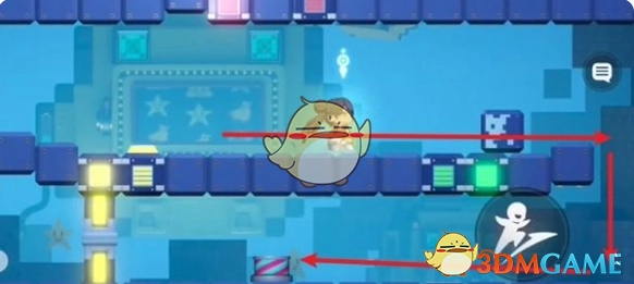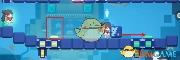 3、有一人站在图中的方框所在之处,另外一人把箱子推至机关按钮所在的位置。
