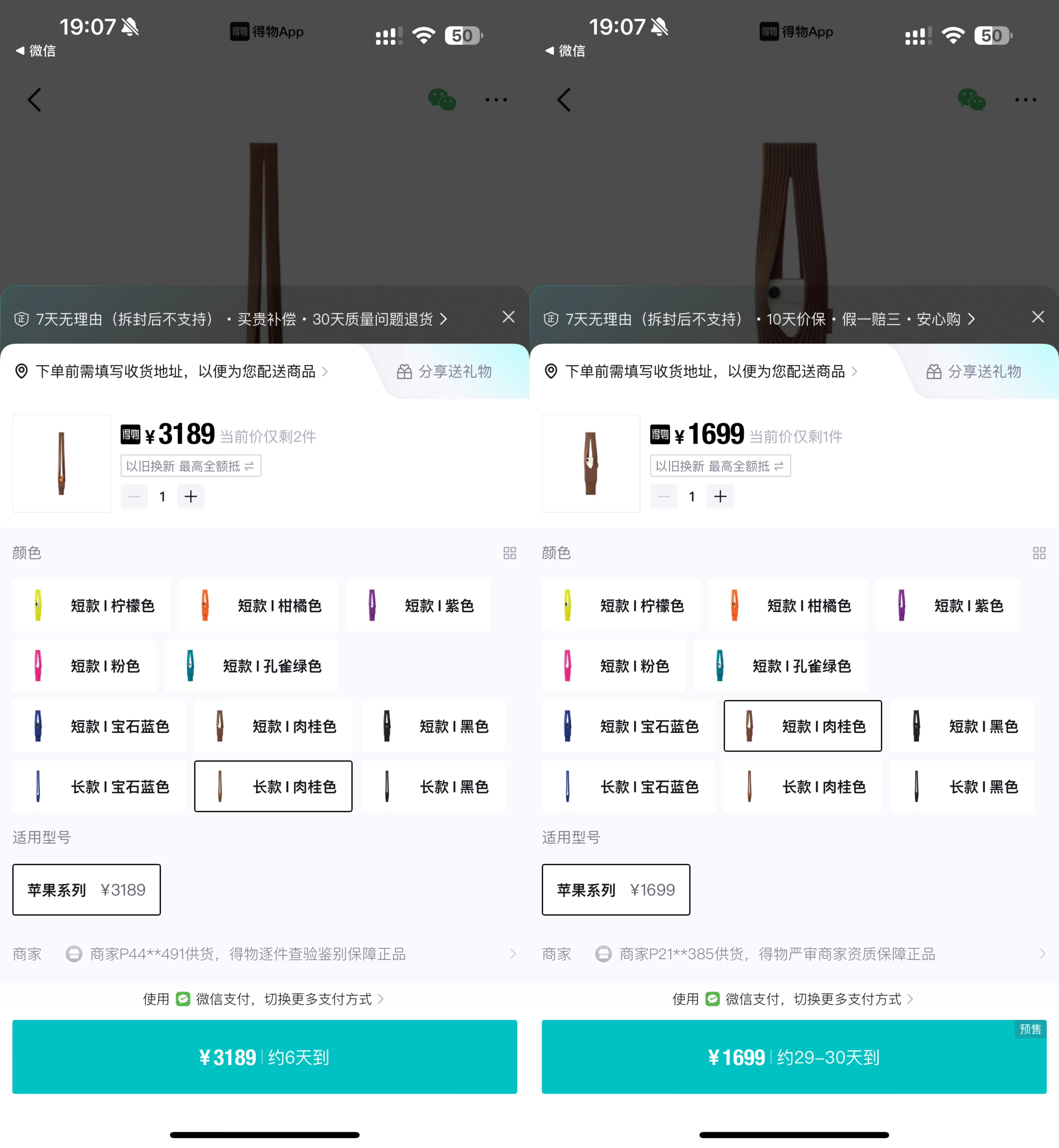 更让人意外的是,价格还出现了溢价。小雷在得物APP上查询发现,长款iPhone Pocket的售价已升至3189元,较原价高出1290元;短款则卖到1699元,小幅上涨了400元。