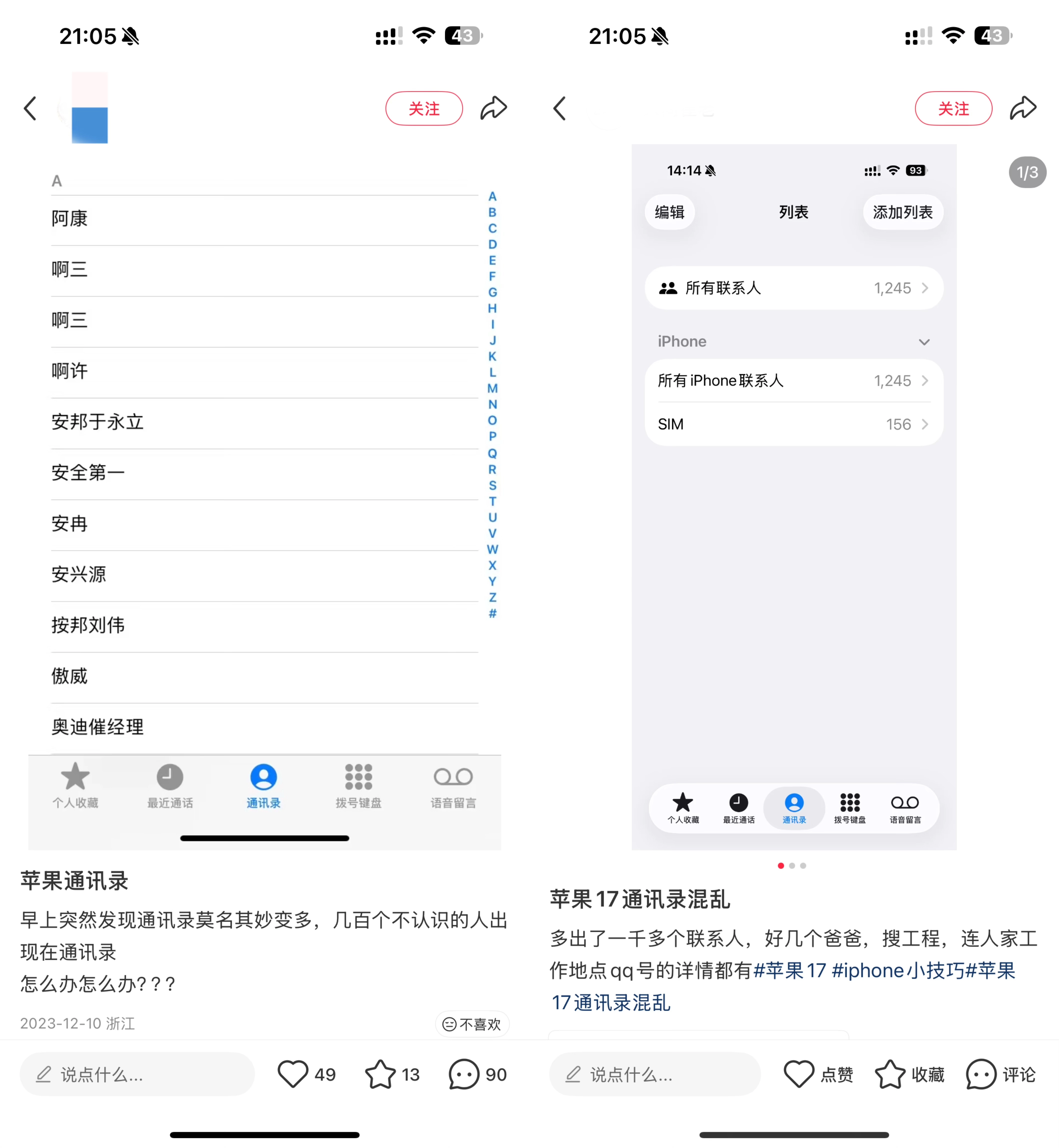 可能有朋友觉得这只是个例,但小雷扒了一下发现,苹果通讯录“闹鬼”早就不是新鲜事了。从老机型到新系统,类似问题层出不穷。