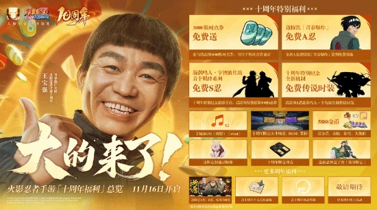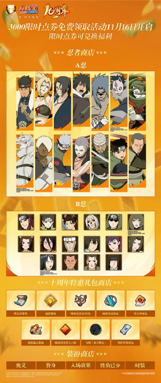 火影忍者手游十周年限时点券商店即将于11月16日盛大开启!活动期间将有3000限时点券免费放送,商店内不仅能兑换全新A忍纲手【妖怪奇谭】,还有众多超人气忍者返场,此外更有限定招募券、超影服务、战力道具等丰富奖励可供兑换,精彩内容不容错过,敬请期待!