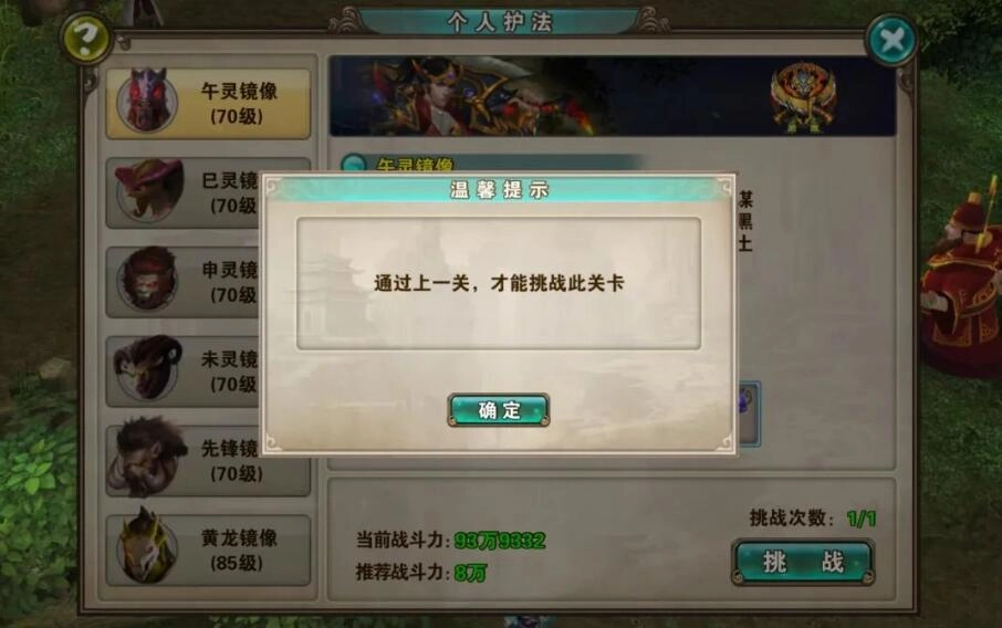 ①所有的个人护法副本都是有关卡限制的,也就是说,必须挑战成功上一关,才可以挑战后面的个人护法副本
