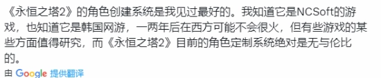 实际的呈现效果让许多西方玩家颇为惊叹,有玩家坦言:“这无疑是当下甚至明年最精美的MMO,有谁不认同?游戏的美术水准直接让我惊艳到说不出话。”“《永恒之塔2》的捏脸系统是我所见过的最出色的,没有其他能与之相比。”