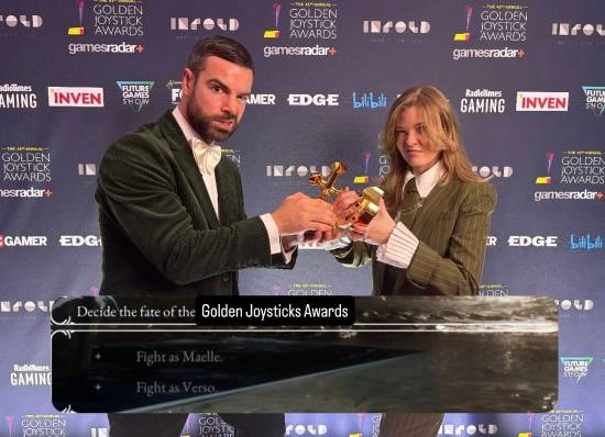 2025年11月21日,金摇杆游戏大奖颁奖典礼落下帷幕后,官方推特发布了《光与影:33号远征队》斩获七项大奖的合影,并以玩梗的方式放出了一张涉及剧透的图片,内容是关于“维尔索还是玛埃尔”的选择。