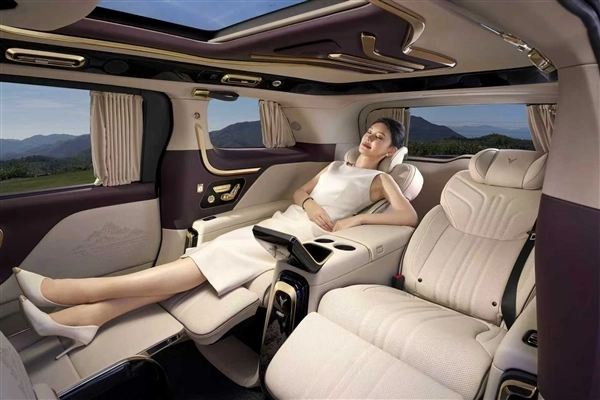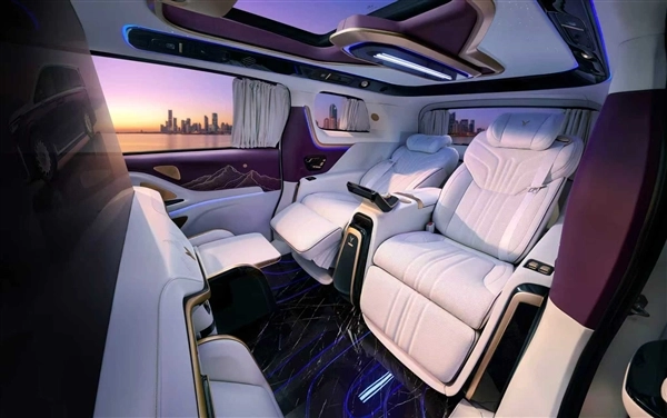 这款车全车仅设四个座位,采用全隔断独立后舱设计,能够实现前后舱的完全分隔,一键启动后即可营造出私密空间,充分满足商务洽谈与休憩的需求。