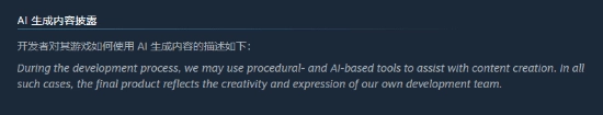 在不少游戏的Steam商店页面底部,通常会有一行小字说明游戏是否采用了AI生成内容,以及这些内容具体应用在哪些地方等信息。然而在Epic游戏商店里,却压根找不到这类标识。